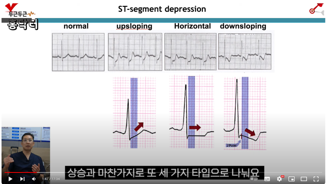 ST depression은 ST elevation과 마찬가지로 다음과 같은 세 가지 타입으로 나뉜다.