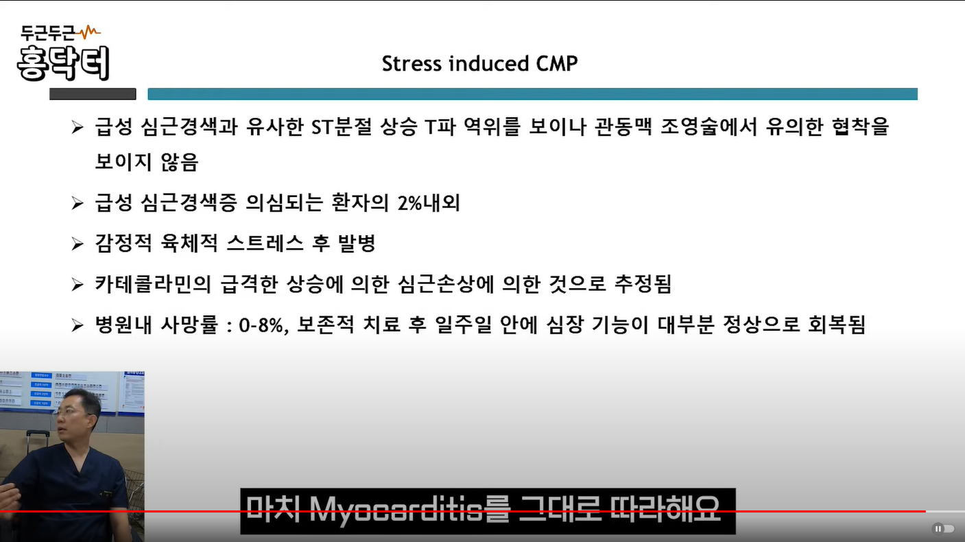 -> 진단명은 <Takotsubo cardiomyopathy = 스트레스성 심근 병증>.